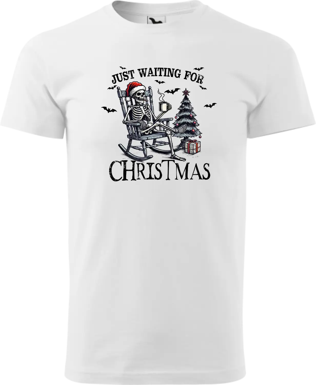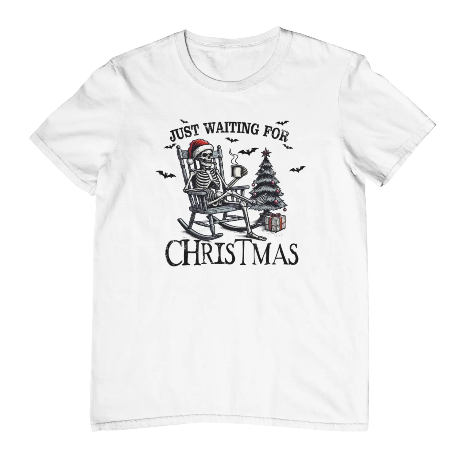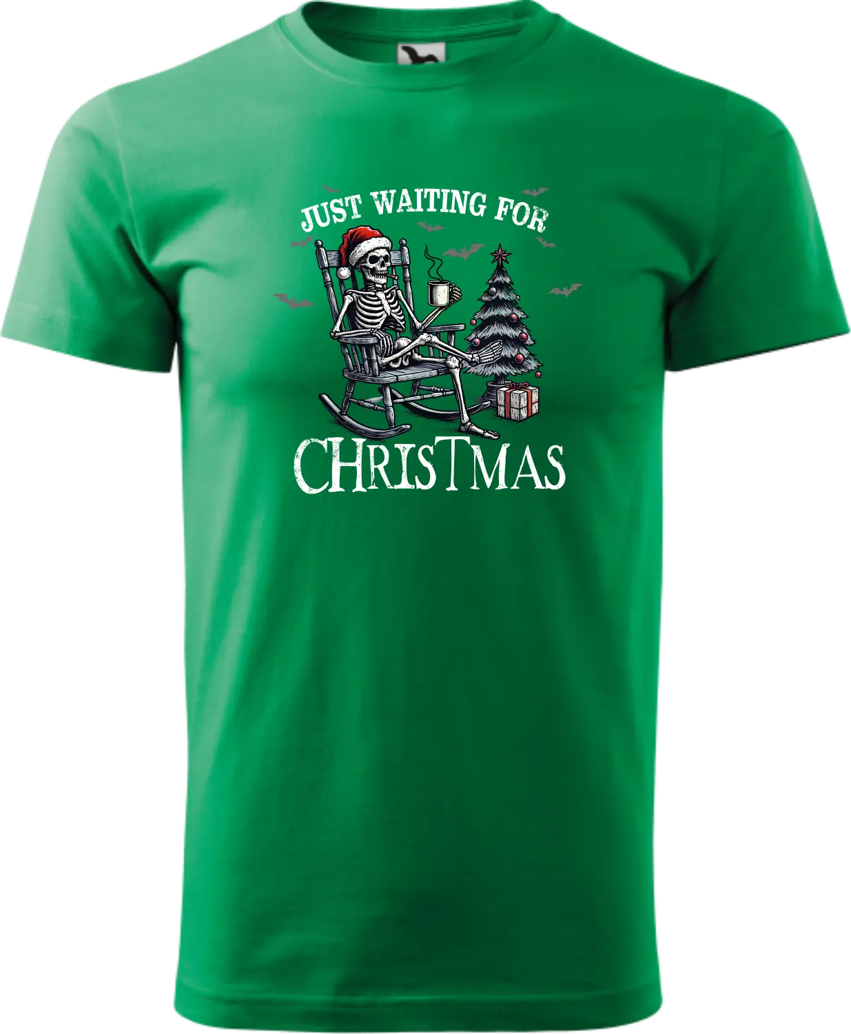 Zbliżają się Święta Bożego Narodzenia, a Ty chcesz wyróżnić się w tłumie? Nasza męska koszulka z nadrukiem kościotrupa w czapce Mikołaja, bujającego się na fotelu z napisem "Just Waiting for Christmas", to doskonały wybór! To idealny sposób na wyrażenie swojego poczucia humoru i stylu, jednocześnie celebrując radosny czas świąteczny.