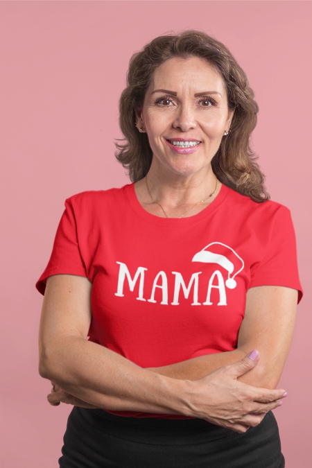 Przedstawiamy naszą wyjątkową świąteczną koszulkę bawełnianą z napisem "mama" i uroczą grafiką czapki Mikołaja. To doskonały prezent dla mamy na święta lub idealny strój na okres świąt Bożego Narodzenia. Ta koszulka łączy w sobie wyraz miłości i radości świątecznego czasu.
