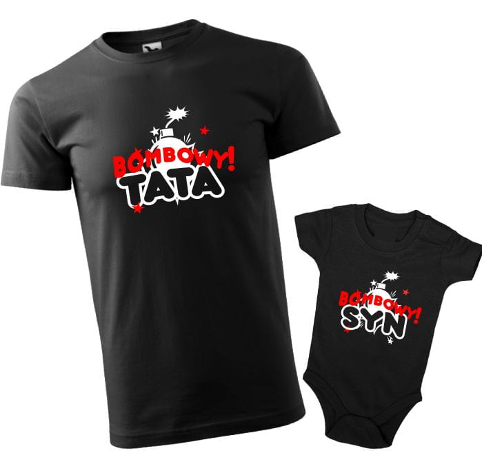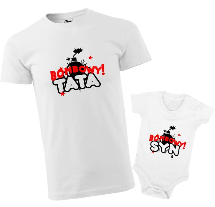 Zestaw, koszulka dla taty i body dla syna z bombowym nadrukiem.